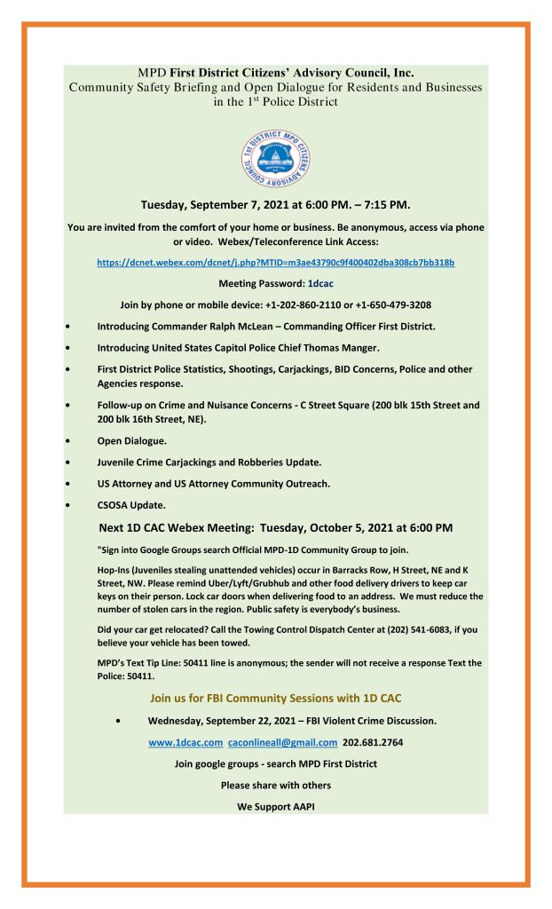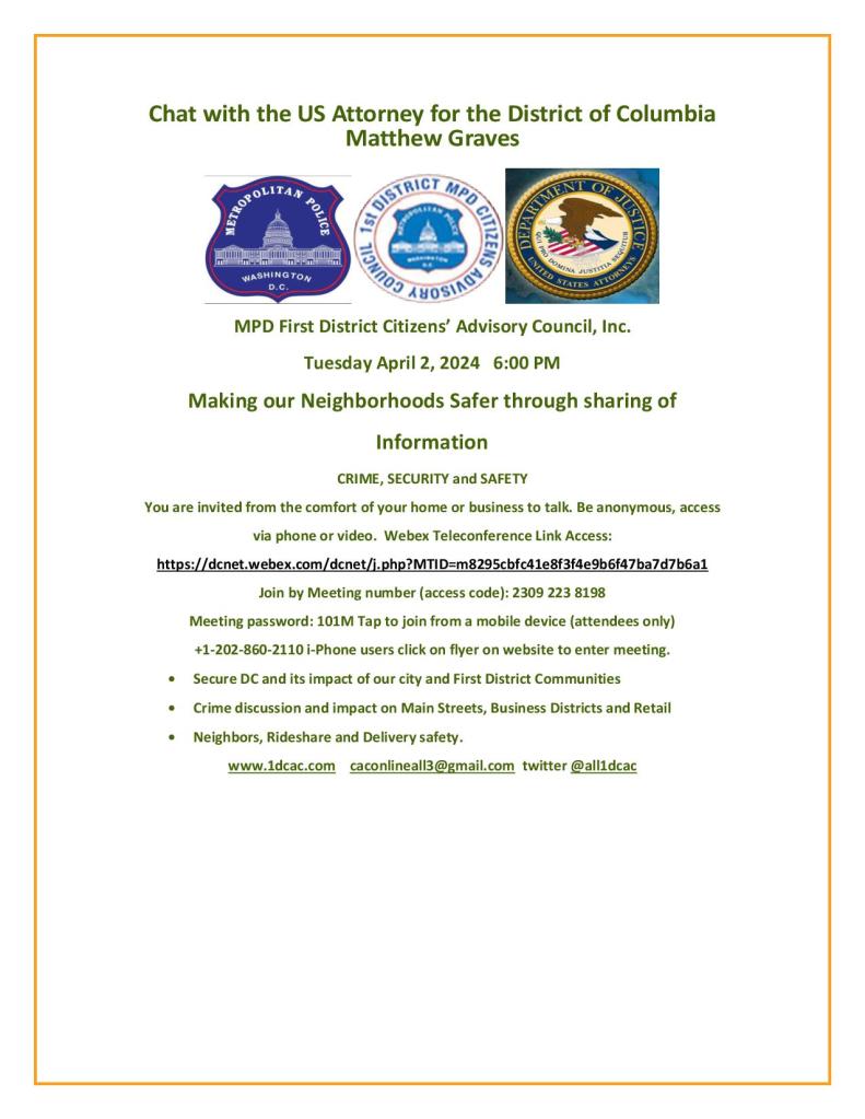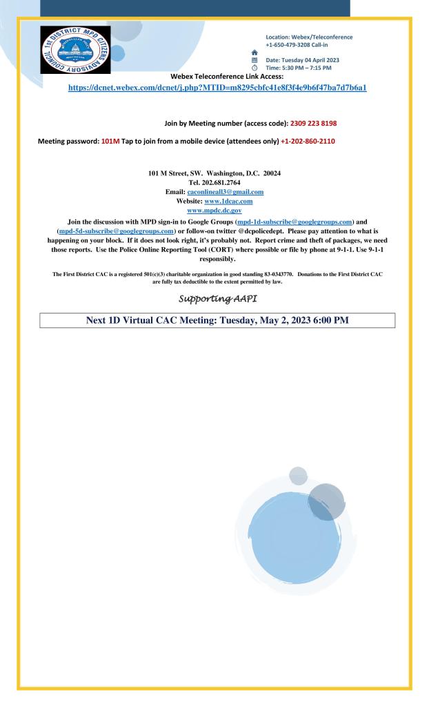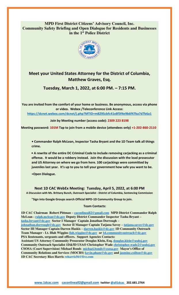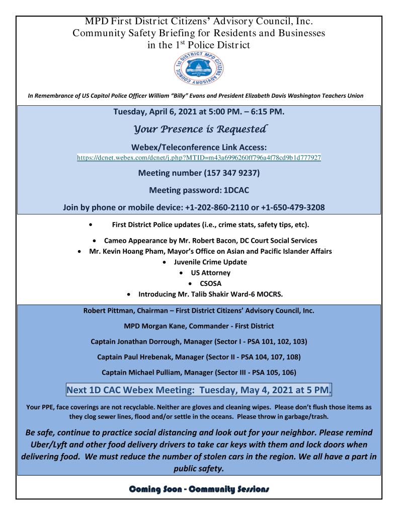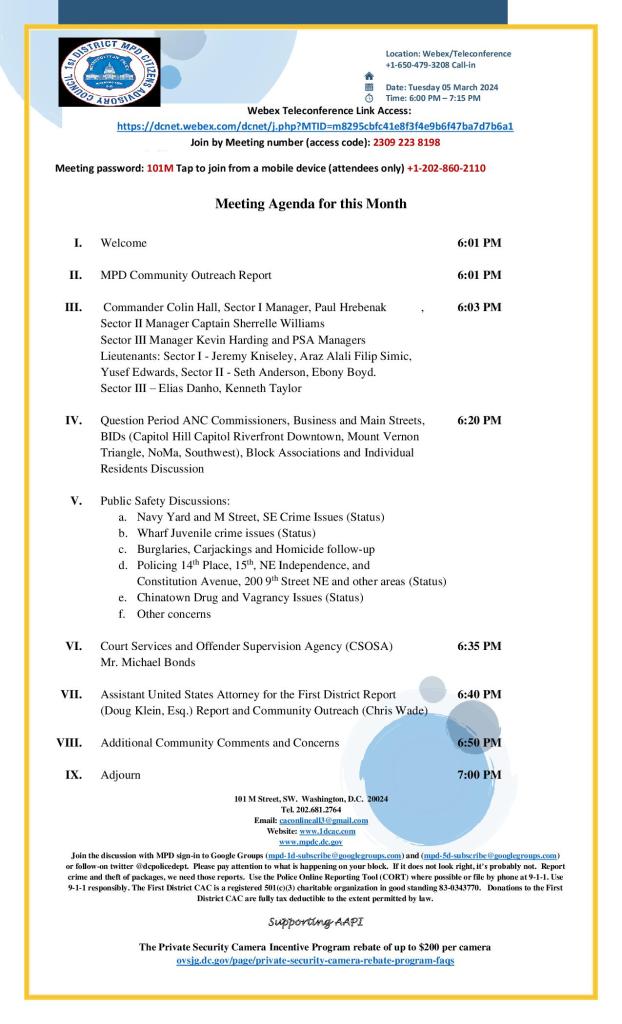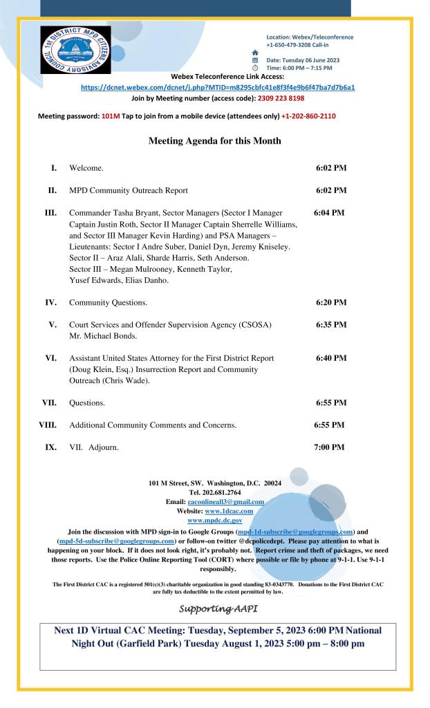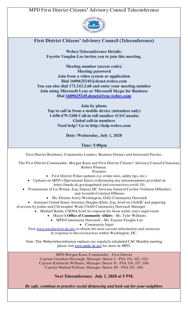 First District Community Outreach Coordinator invites you to join this Webex meeting.