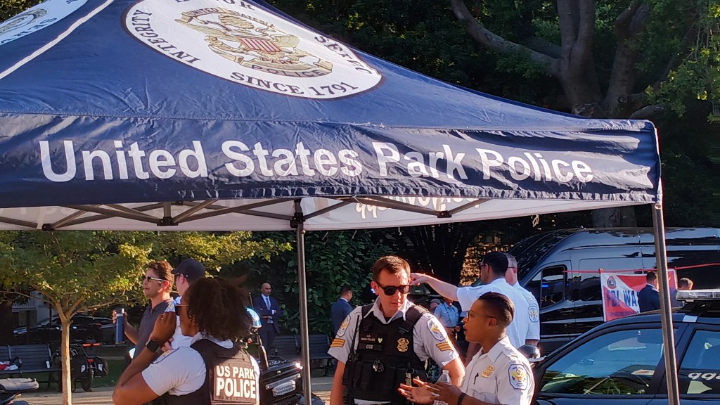 “The behavior displayed last night in Navy Yard is unacceptable, and MPD and our law enforcement partners will have an increased presence tonight to ensure this does not happen again,” said Chief of Police Pamela A. Smith. “This group chose not to visit any of the events hosted by MPD or our DC agency partners and instead gathered in this manner. This evening, MPD will preemptively close several streets around the park area south of M Street, Southeast. The public can expect to see an increased deployment of MPD officers and partner agency members. I commend our officers and our partners for their professionalism during this incident.”