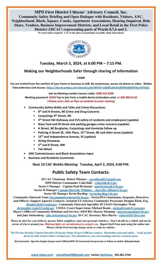 Anyone with information or video footage related to these incidents is asked to contact MPD at 202-727-9099 or text the department’s tip line at 50411.