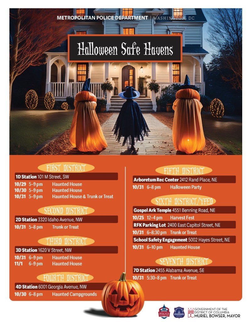 During the time this activity occurred, MPD and our partner DC agencies hosted numerous successful Halloween events across DC. Outside of the area around the Navy Yard Metro Station, no other disorderly gatherings occurred elsewhere in DC, and no significant incidents occurred.