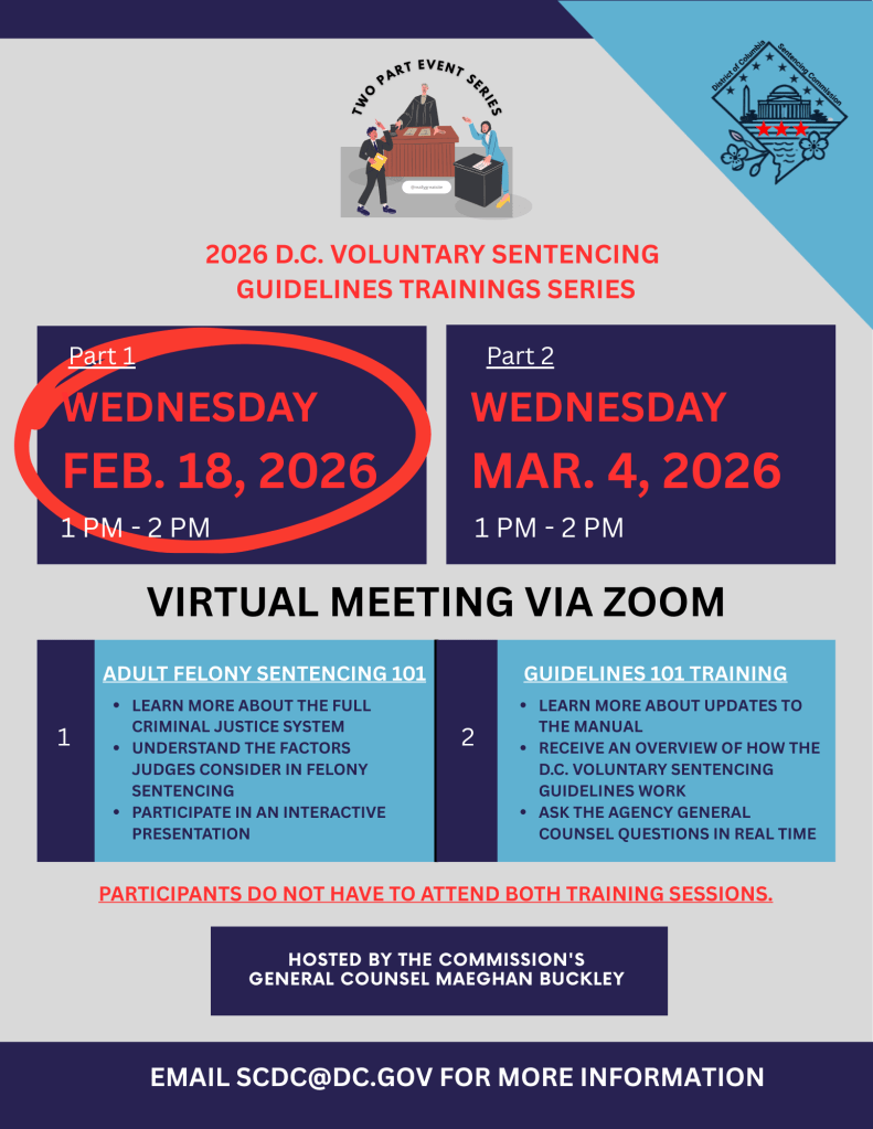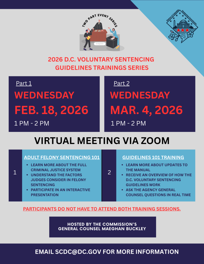 The D.C. Sentencing Commission is excited to announce its upcoming two-part 2026 D.C. Voluntary Sentencing Guidelines Training Series!