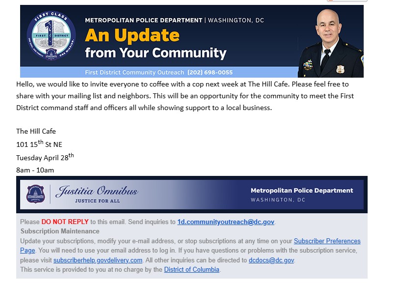 Anyone who can identify this suspect or who has knowledge of this incident should take no action but call police at (202) 727-9099 or text your tip to the Department’s TEXT TIP LINE at 50411. The Metropolitan Police Department currently offers a reward of up to $1,000 to anyone who provides information that leads to the arrest and indictment of the person or persons responsible for a crime committed in the District of Columbia.